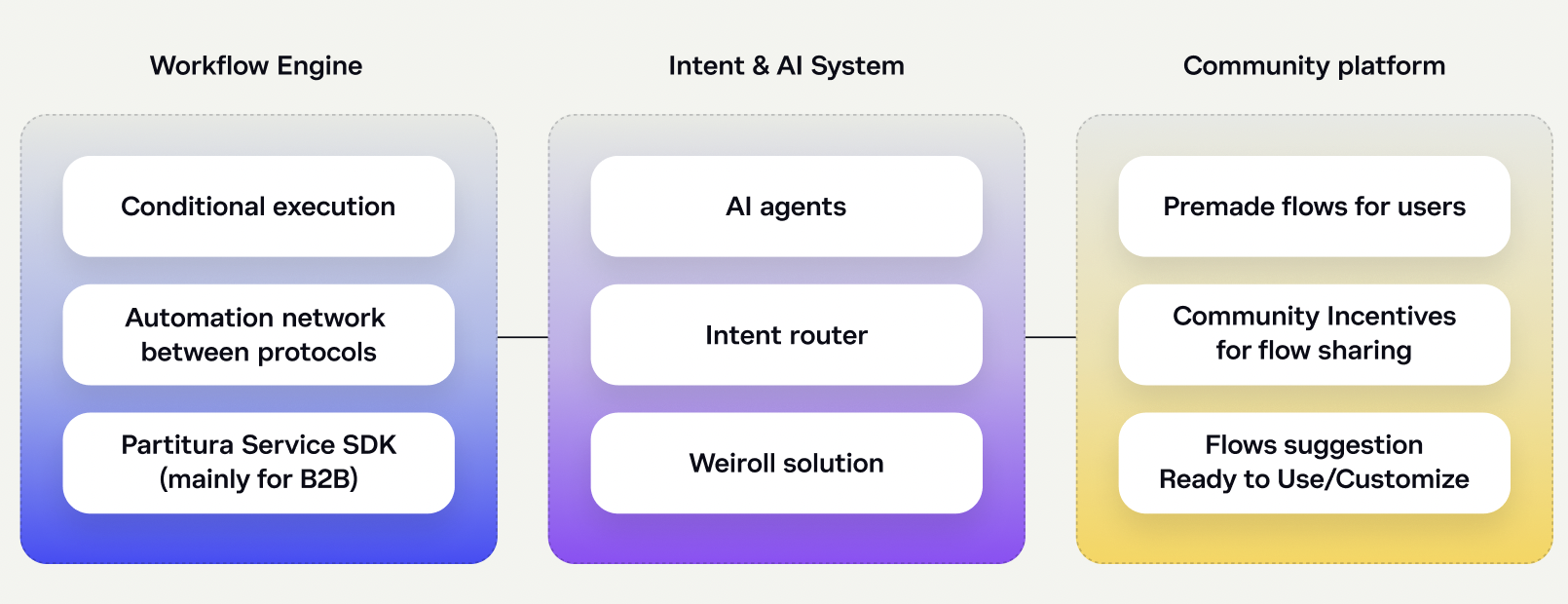 A pivotal component of our infrastructure is our Intent framework. We are converting integrations from various protocols like Sushiswap, Uniswap, Curve, into a Swap block. This enables user intents such as “I want to swap 100 USDT for ETH at the best price” without specifying the exact protocols. Another instance of such a block is the Earn block, catering to users who seek the highest APY for ETH on any chain. These blocks significantly enhance the capabilities of our AI assistance.